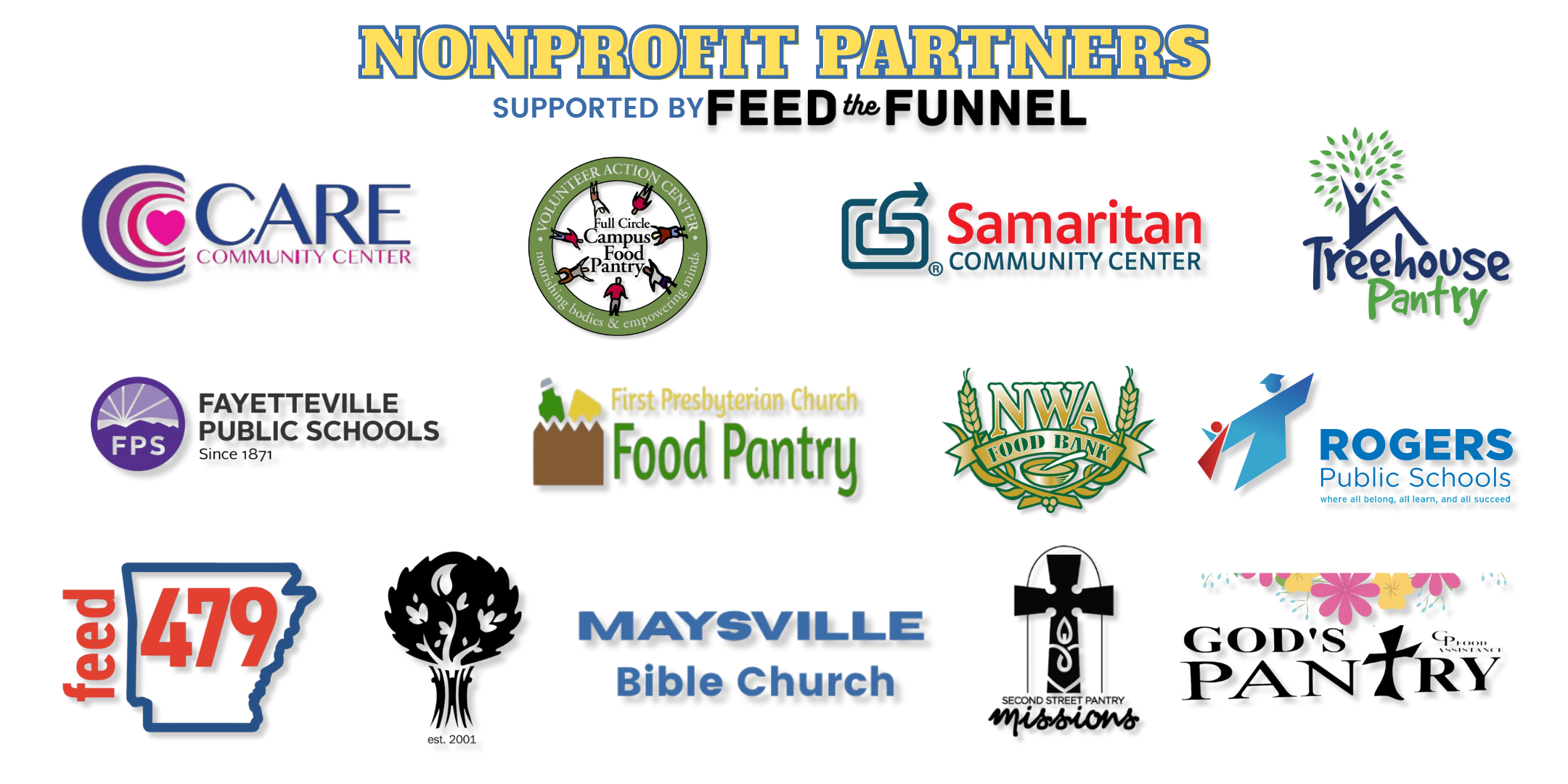 Join 1,500 of your friends at the 500k for NWA Feed the Funnel Experience to pack 500,000 MEALS for neighbors in Northwest Arkansas who are facing food insecurity. The meals you pack will be donated to these LOCAL NONPROFITS across Northwest Arkansas.